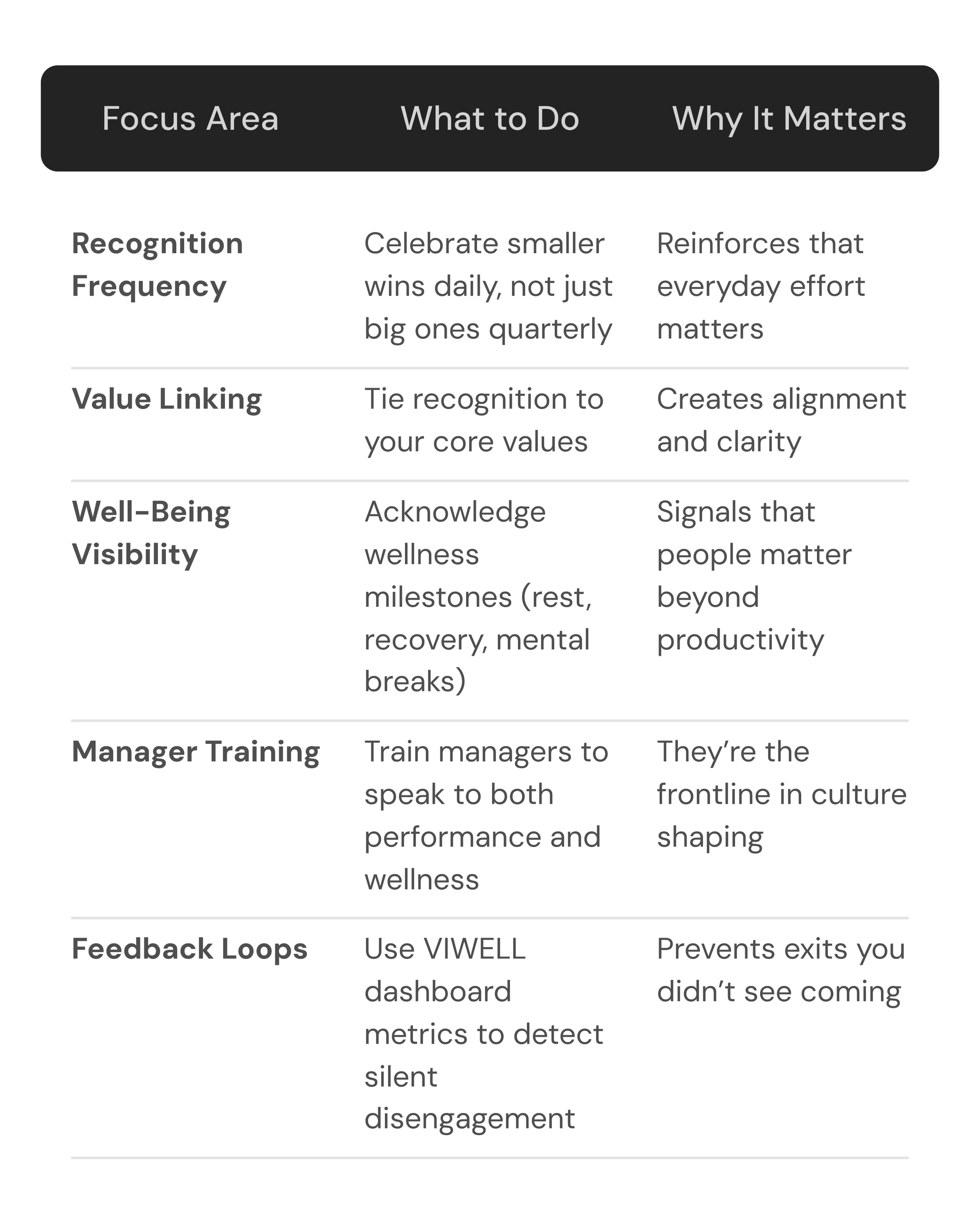 That’s the promise of VIWELL: to help you make recognition and well-being inseparable parts of your culture - not afterthoughts.